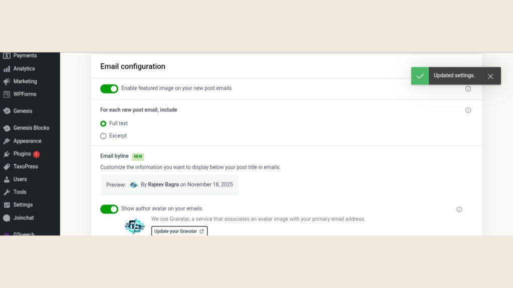 - Want “plug-and-play” new-post emails and zero cost? Use Jetpack (free) and enable Subscriptions/Newsletter.